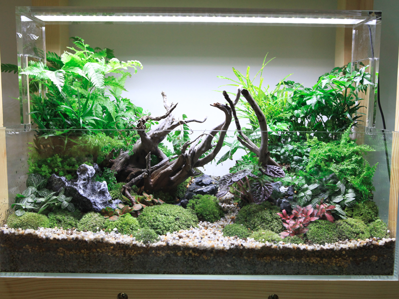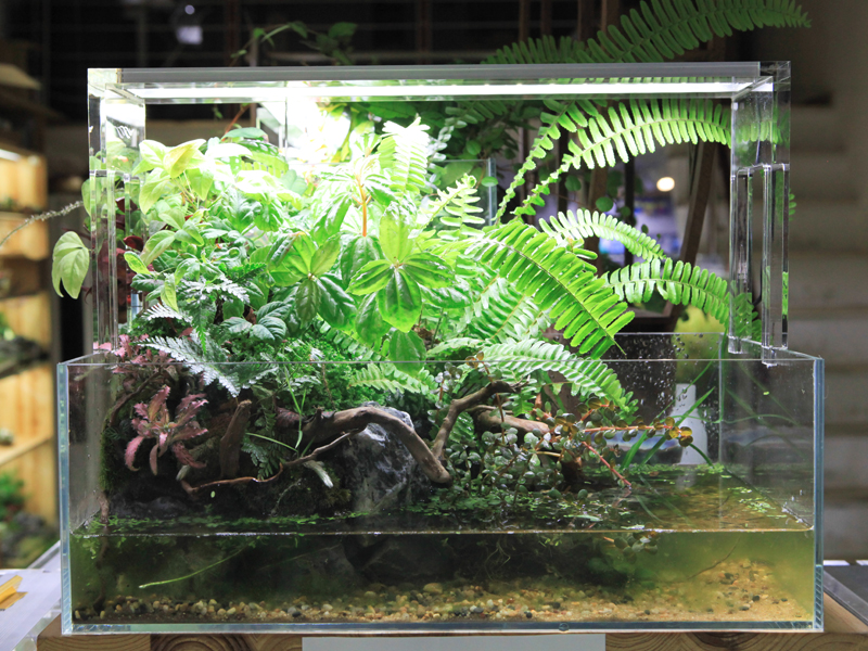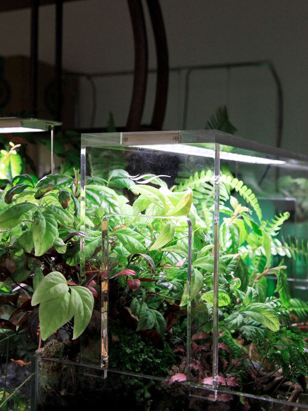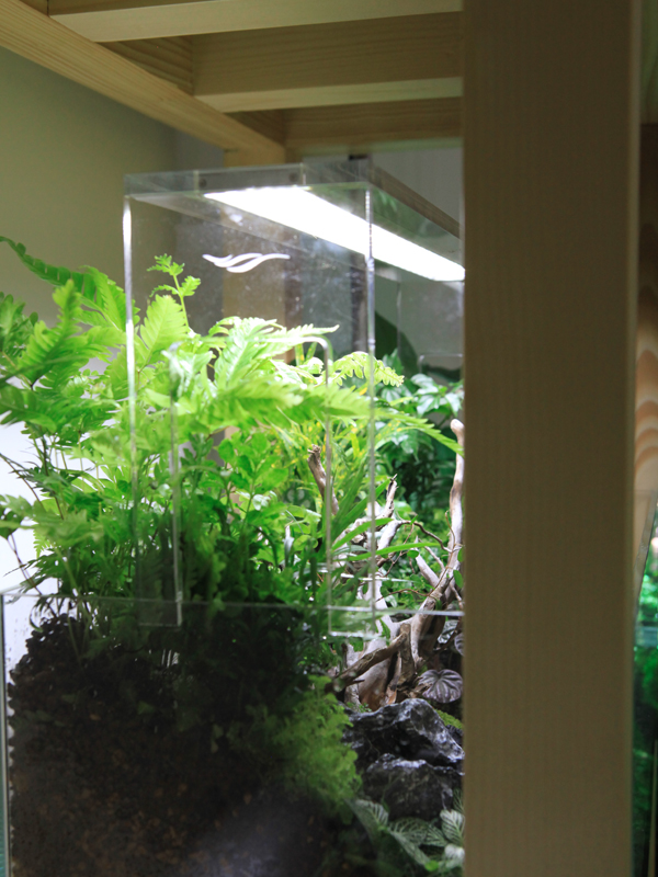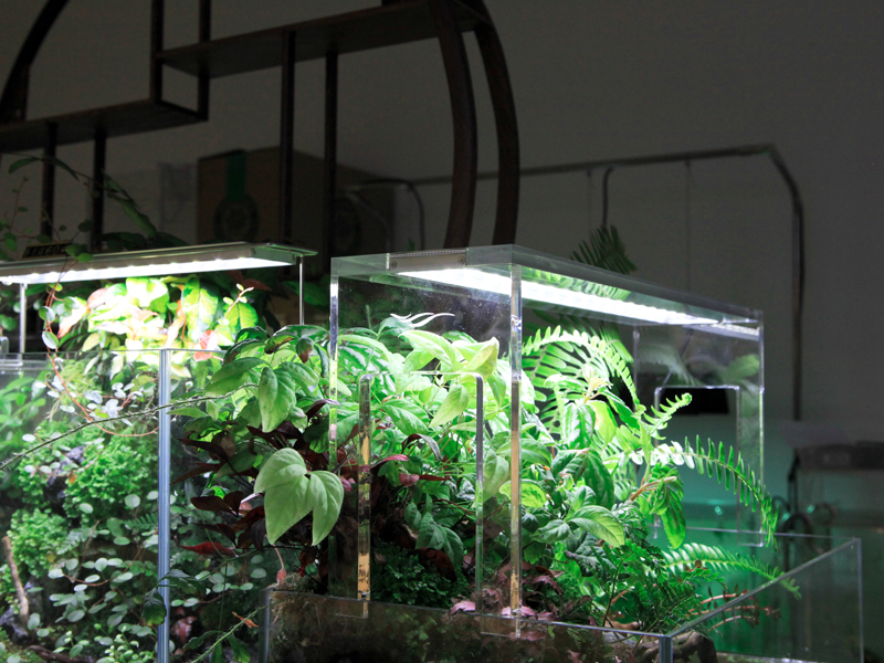 CHIHIROS Amphibious LED to system oświetlenia na wysokim, akrylowym stelażu, specjalnie dla terrariów i paludariów w stylu Wabi-kusa. Zbiorniki w których żyją rośliny lądowo-wodne wymagają specjalnych warunków świetlnych (umiarkowane oświetlenie), które umożliwią optymalny wzrost i rozwój roślin oraz mchów. Transparentna, akrylowa konstrukcja daje wrażenie otwartości i unoszenia się światła nad zbiornikiem. Odpowiednia wysokość stelażu oświetlenia pozostawia niezbędne miejsce do bujnego wzrostu roślin ponad akwarium, co dodatkowo wzmacnia jego naturalny wizerunek. Ponadto duża przestrzeń pomiędzy oświetleniem a akwarium nie zasłania widoku roślin, które są najważniejszym elementem akwarium lądowo-wodnego. CHIHIROS Amphibious LED współpracuje z manualnym i bezprzewodowym systemem regulacji światła LED CHIHIROS.